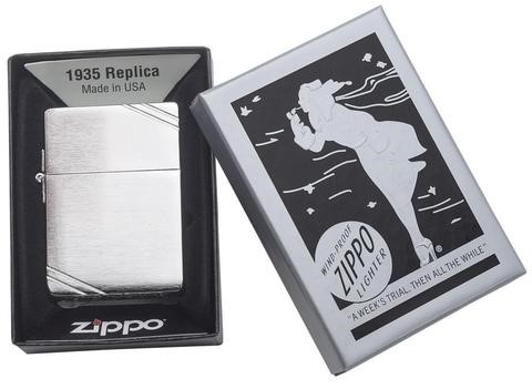 Зажигалка ZIPPO 1935 Replica Brushed Chrome 1935 от официального дилера Zippo в Жуковске. Вы можете дополнительно заказать гравировку, которая подчеркнет Вашу оригинальность и придаст памятность статусному подарку.